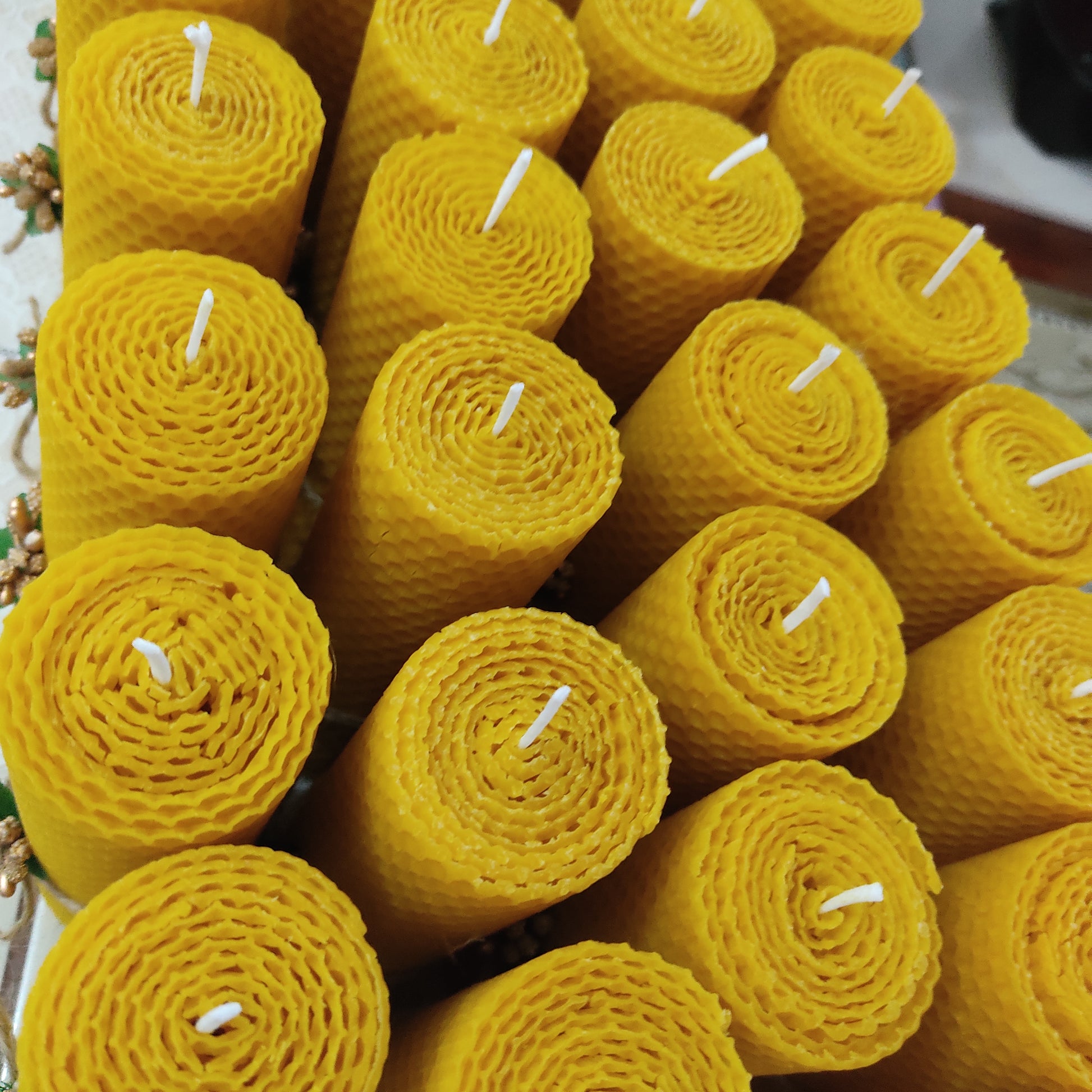 12 large ritual candle boxes, Beeswax candles, Hand-Rolled Comb Candles